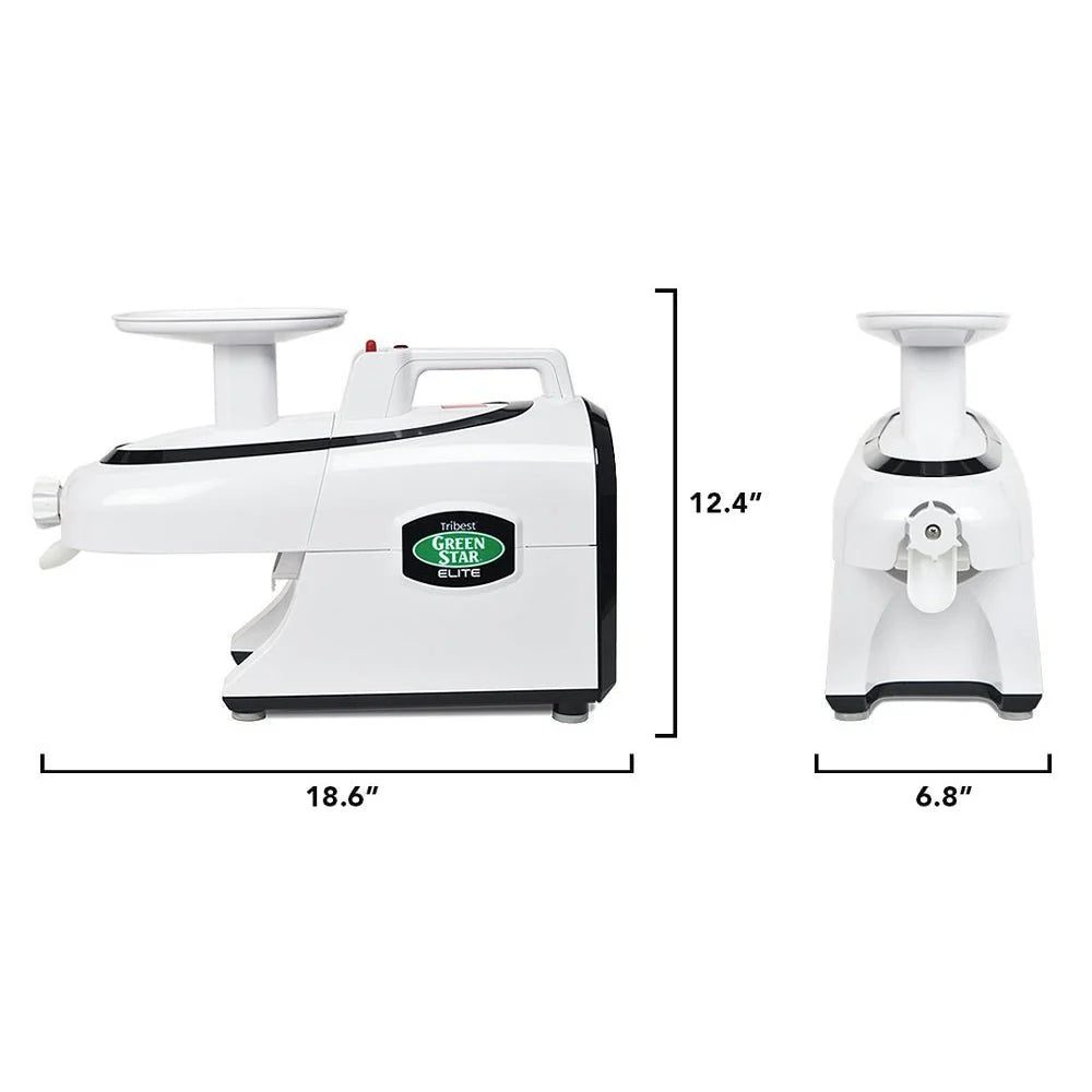 The Tribest Green Star Elite Jumbo Twin Gear Juicer is a newly modernised version of the original Green Star juicer.
